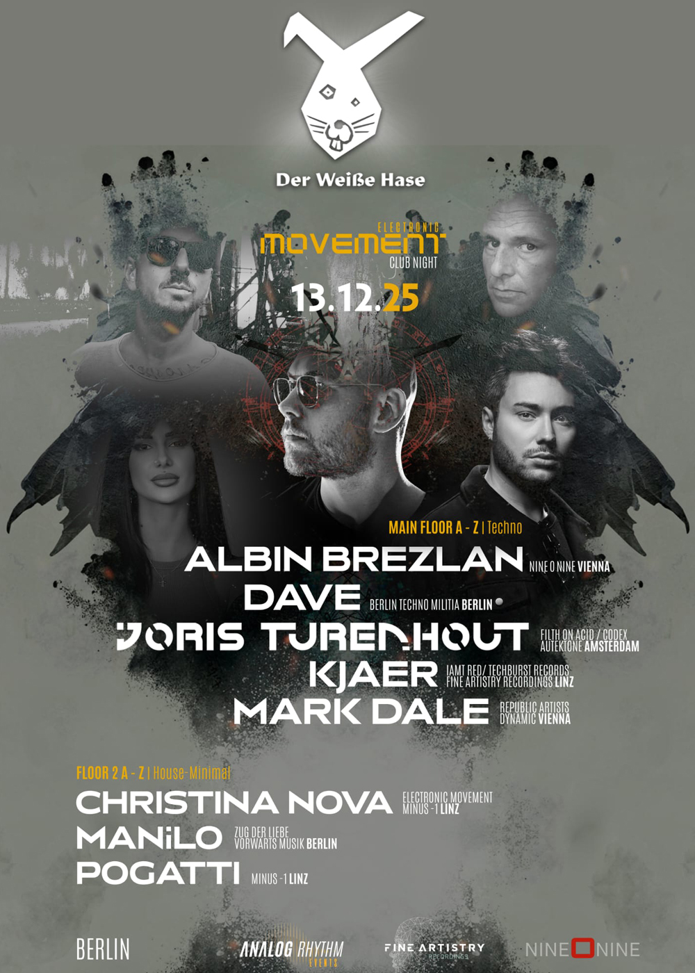 Joris Turenhout, KJAER, Albin Brezlan, Mark Dale, DAV3, Manilo, Christina Nova, Pogatti